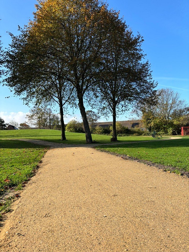In de wijk Zeeburg in Noordwijkerhout ligt de KoMex gele variant verwerkt. Midden in het groene buurtparkje komt de gele halfverharding prachtig tot zijn recht. De frisse kleur vormt een warm contrast met het weelderige groen eromheen, kinderen kunnen hier heerlijk spelen, een balletje overtrappen of wat dan ook, zo kun je hier ook enkel een wandeling maken om even te ontsnappen van de dagelijkse druktes.