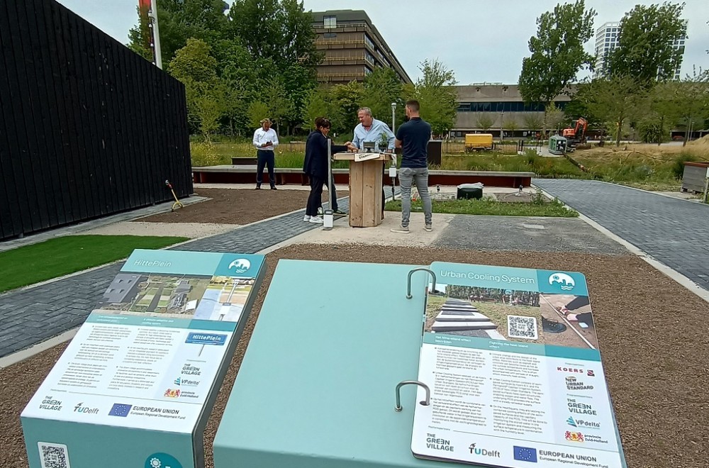 Presentatie van Urban Cooling System op Hitteplein in The Green Village van TU Delft