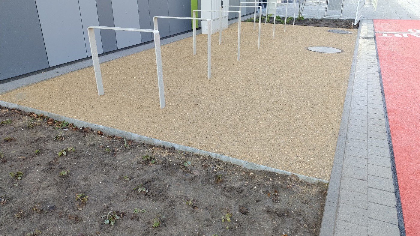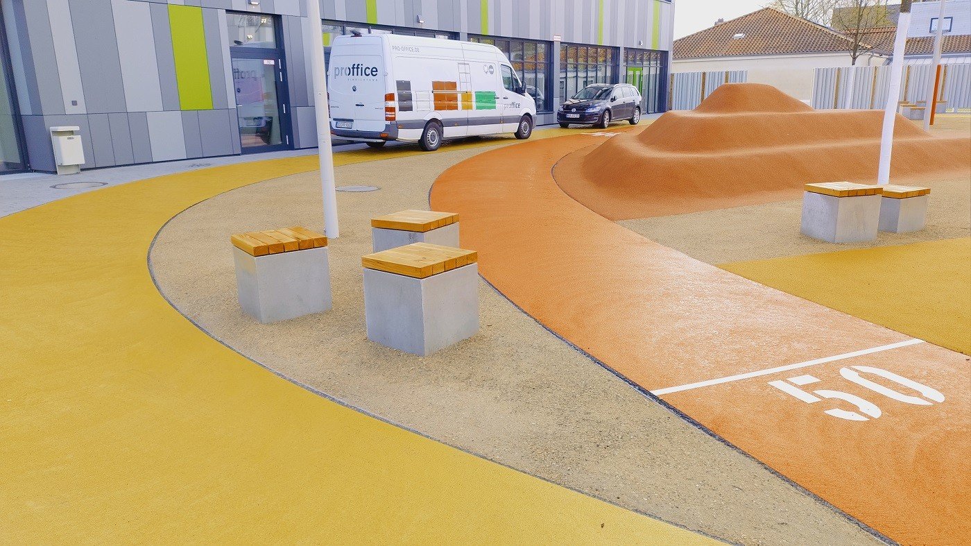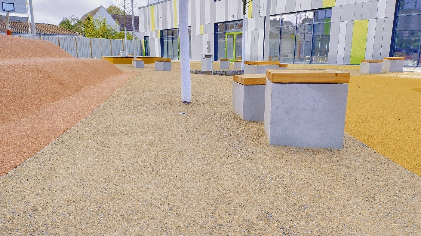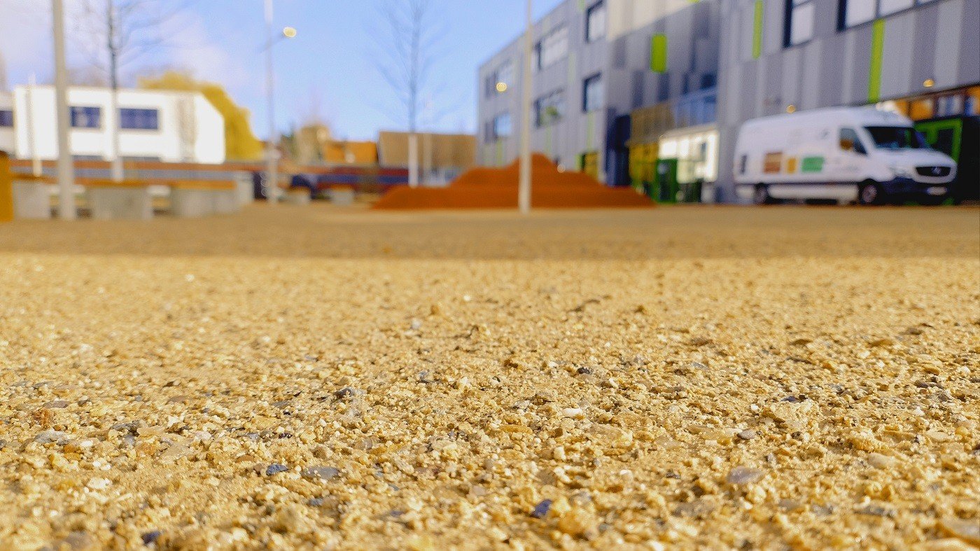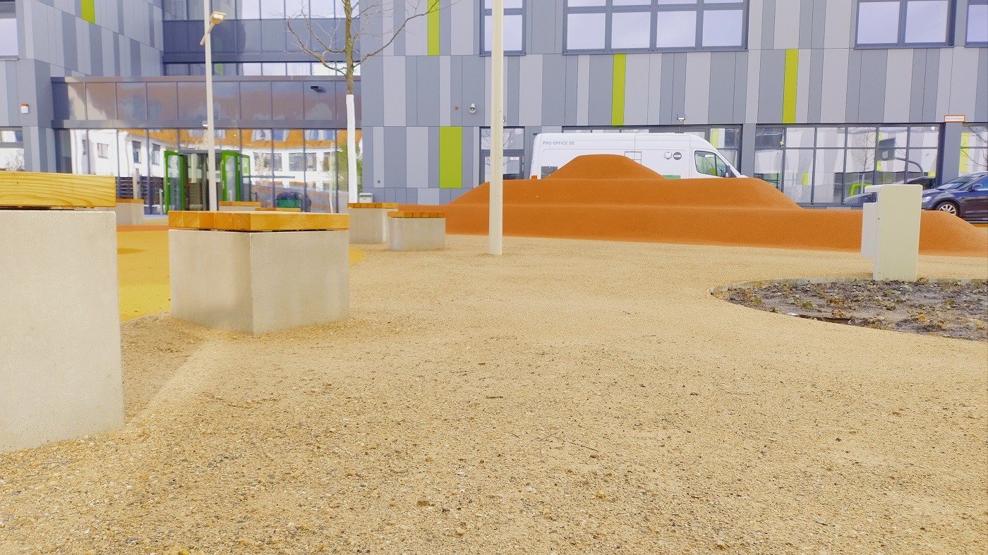 Na de paasvakantie van 2026 vond de feestelijke opening plaats van de nieuwe PeterHärtling-Schule (een school voor speciaal onderwijs van de Kreis Soest). In februari en maart werd op verschillende plekken de waterdoorlatende halfverharding KoMex Geel van Koers aangebracht. KoMex Geel is uiterst onderhoudsvriendelijk en stabiel. Door organische bindmiddelen krijgt KoMex Geel zijn draagkracht. Het materiaal is zowel geschikt voor hellingen als voor paden in overstromingsgebieden. Hier zijn bijzondere details over de buitenruimte van de Peter-Härtling-Schule: