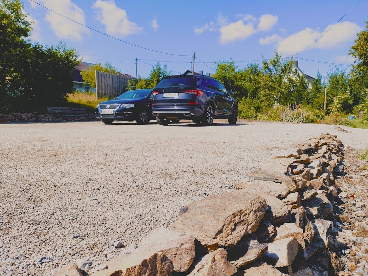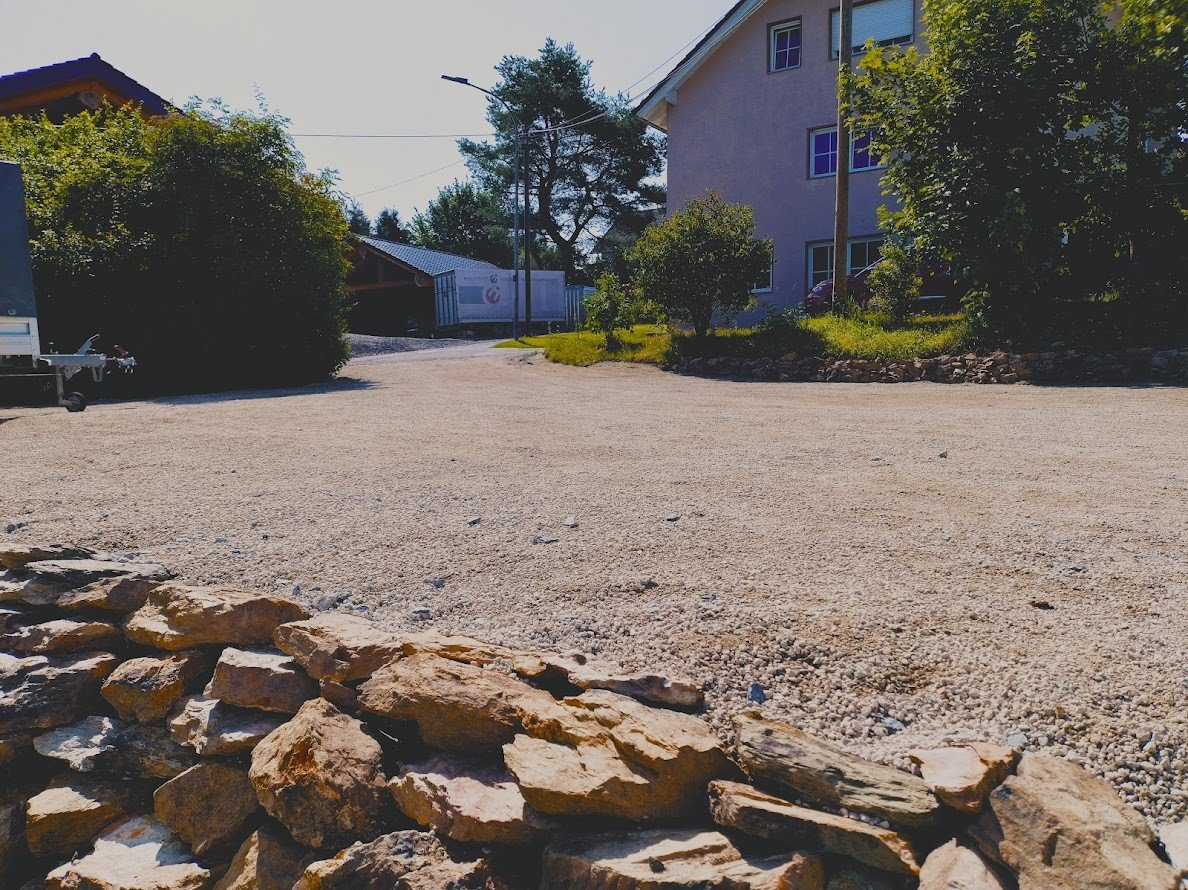 Het huis, een voormalige dorpsschool aan de rand van het dorp, biedt een prachtig uitzicht op het bos. Het werd meer dan 100 jaar geleden gebouwd op een groot perceel op een helling. De oude lerarenkamer fungeert nu als AirBNB. Gasten parkeren direct bij het huis op de circa 270 m² grote parkeerplaats, waar in juni 2025 de KoMex BIO-toplaag werd aangebracht.