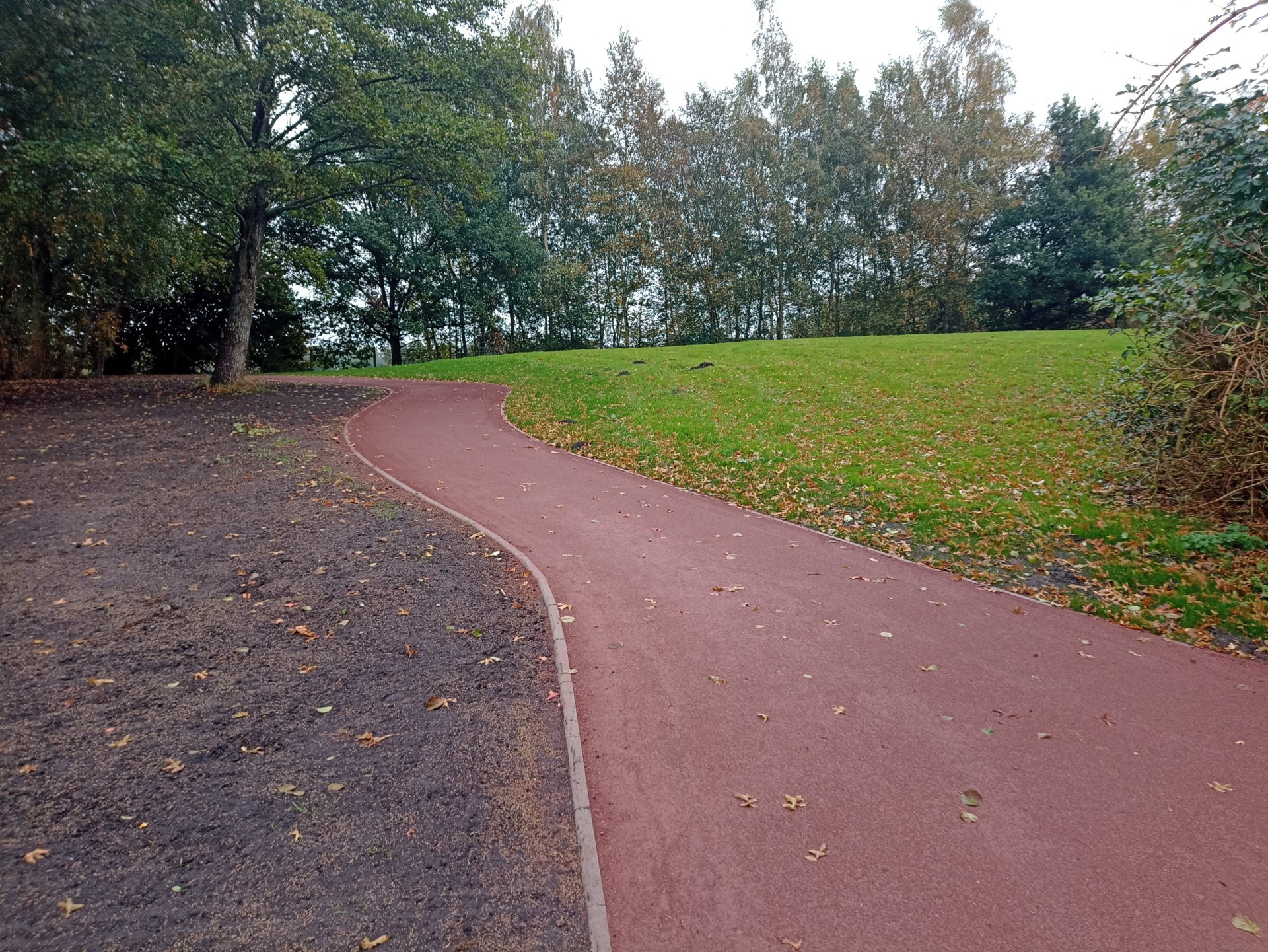 Le nom choisi par Koers pour désigner le matériau utilisé pour le revêtement de chemin lié à l'eau est dans ce cas KoMex Rouge. Il s'agit du premier de plusieurs tronçons qui complèteront à l'avenir le circuit autour du lac d'Ida.