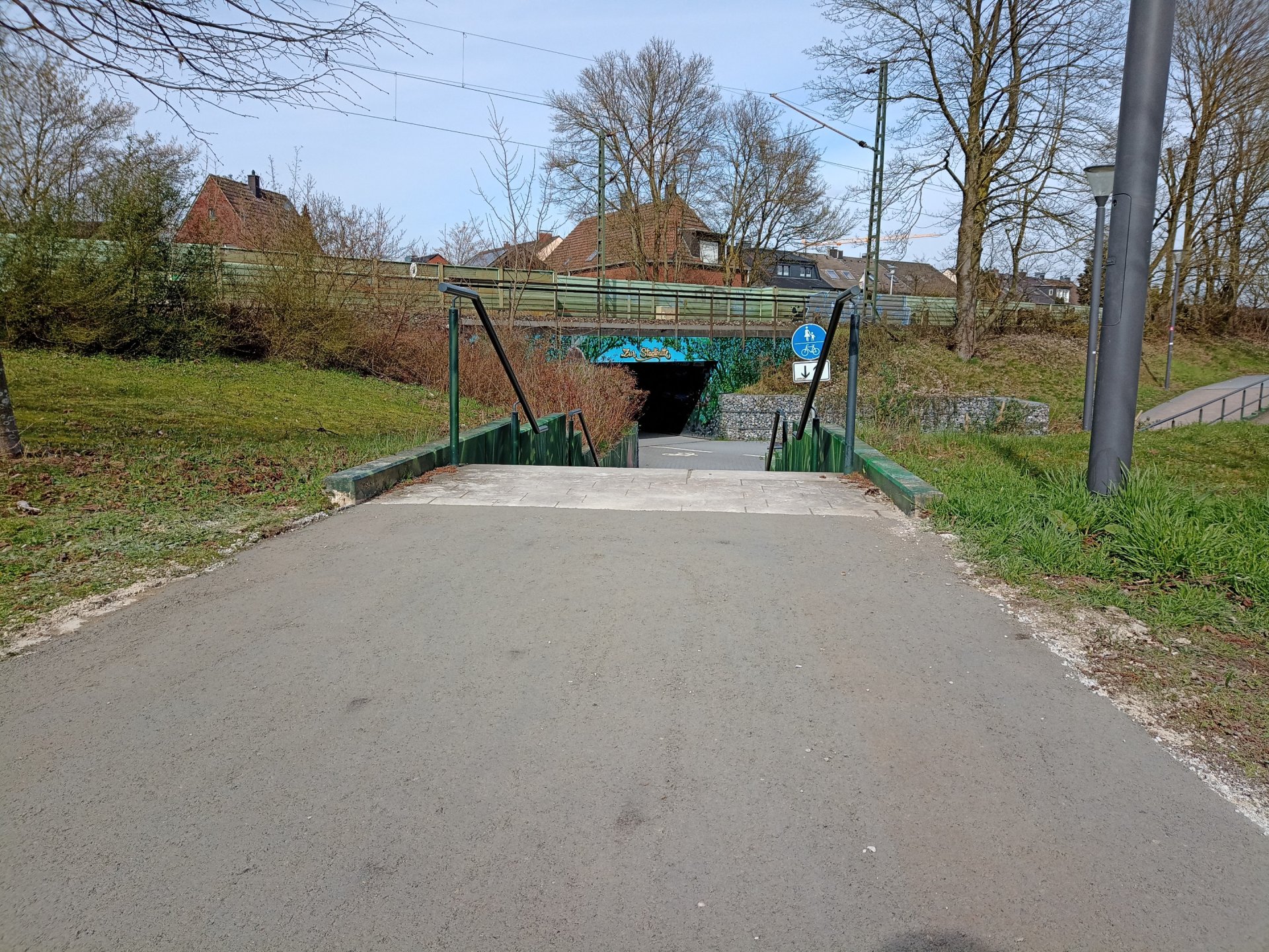 Eind jaren 1970 werd de Hullerner Straße hier onderbroken toen de nieuw gebouwde brug in de Bundesstrasse 58 de overweg in de Hullerner Straße overbodig maakte. Sindsdien eindigt de weg voor het spoor op het fiets- en voetpad. Voor fietsers en wandelaars is er een metro naar het centrum. Het pad van DurEko-Mix kruist dit pad en loopt langs de spoorlijn Marl-Münster. Het pad wordt gebruikt door veel fietsers, wandelaars en joggers op weg naar het Westuferpark. Kort voor het Westuferpark eindigt het DurEko-Mix-pad en gaat het verder over een dolomietzandpad.