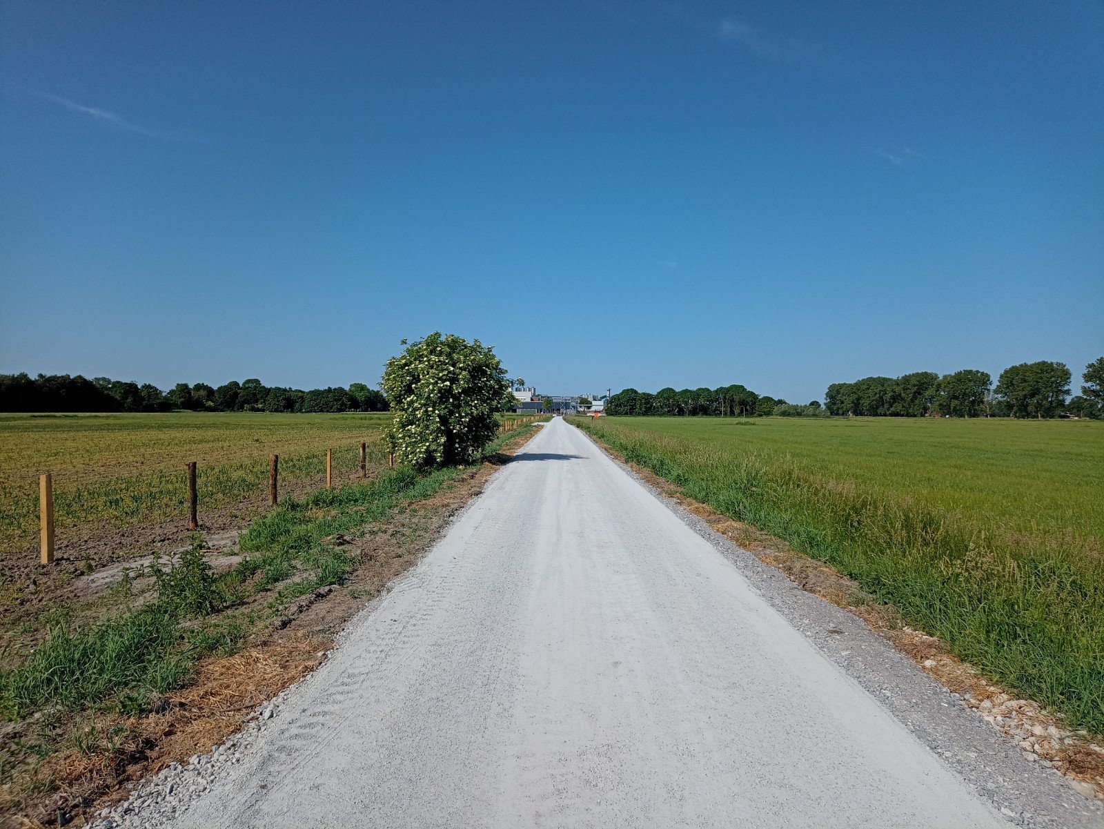 Een tijdelijke oplossing. De nieuw aangelegde Botterbloomstraße in Ovelgönne wordt over een paar jaar geasfalteerd. Tot die tijd moet de weg door het heidegebied zich stabiliseren. Als er meteen zou worden geasfalteerd, zouden er scheuren in het asfalt ontstaan door de bewegingen in de ondergrond.