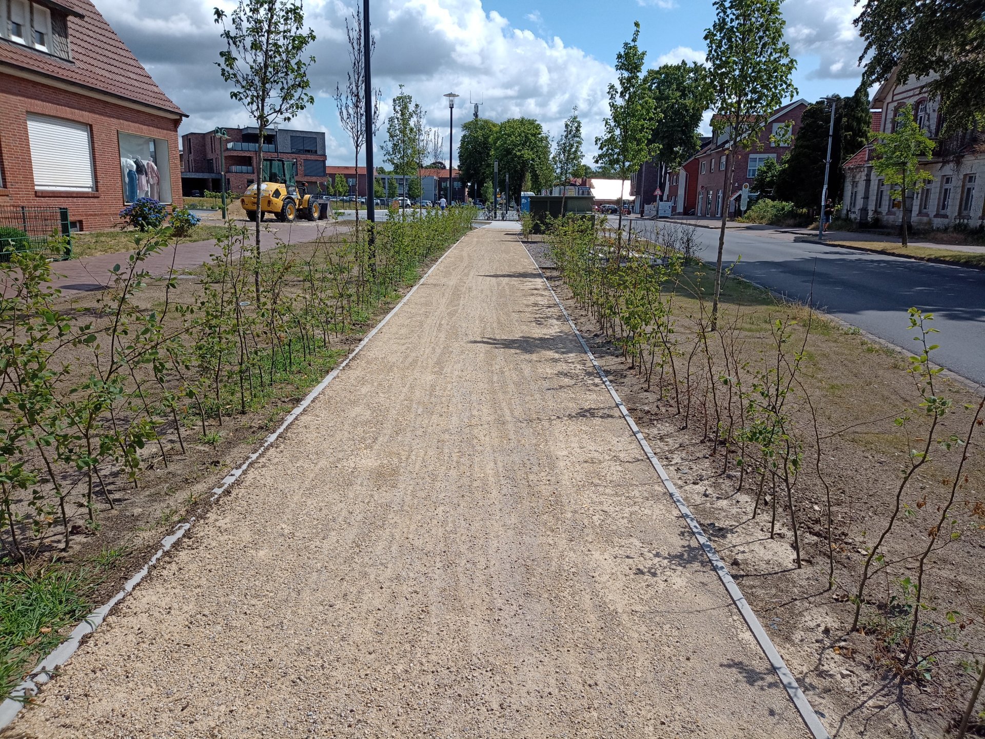 In juni 2023 heeft het bedrijf Heling-Bau Pflasterarbeiten uit Vrees een ongeveer 100 meter lang en 2 meter breed fiets- en wandelpad aangelegd met het toplaagmateriaal KoMex® Geel.