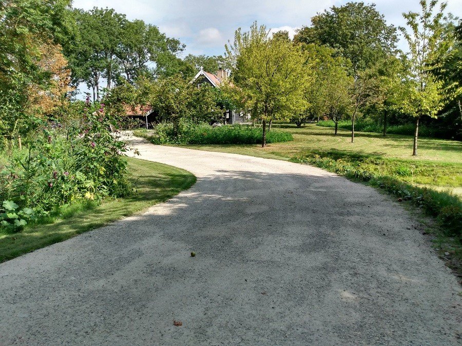 Onlangs heeft Koers een privé oprit aangelegd met een van onze halfverhardingen. De oprit was gelegen op een helling van 12%, hierbij was het van groot belang dat de toplaag niet mocht uitspoelen. Ook moest het bestand zijn tegen gebruik door personenwagens. Hierin werd een voorkeur gegeven aan een product met hoge draagkracht met een natuurlijke uitstraling. KoTRec BIO voldoet heel goed aan deze eisen, het kan intensief belast worden en bestaat voor circa 60% uit schone, hergebruikte bouwstoffen. Het product heeft een beige tot zachtgele kleur.